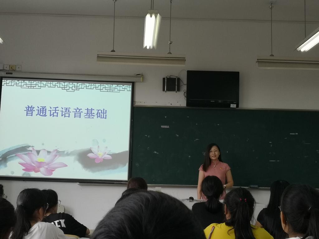 本堂教学观摩课的主要内容是:普通话语音基础,张皎老师让员工从听声音开始,从语音的定义、语音的三大属性、语音的基本概念等方面进行普通话语音的讲解,在教学设计、课件制作、教法和学法研究等方面做了较多的创新,课堂讲解环环相扣, 内容精彩纷呈,达到了预期的效果。